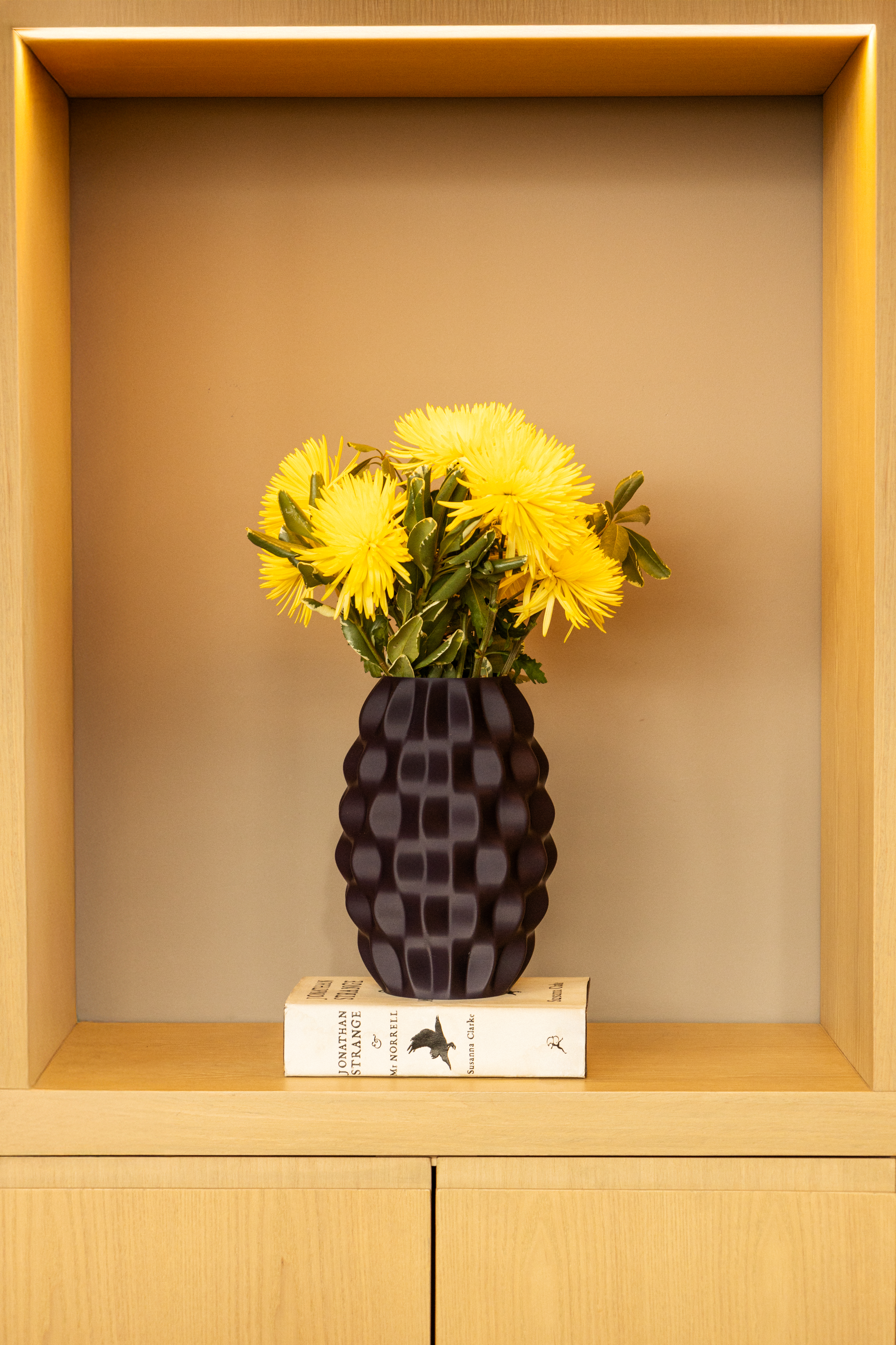 Este florero, exclusivo para uso interior y fabricado en nuestro laboratorio en la ciudad de Bogotá, es manufacturado digitalmente usando filamento bioplástico elaborado a partir de maíz, remolacha y trigo.